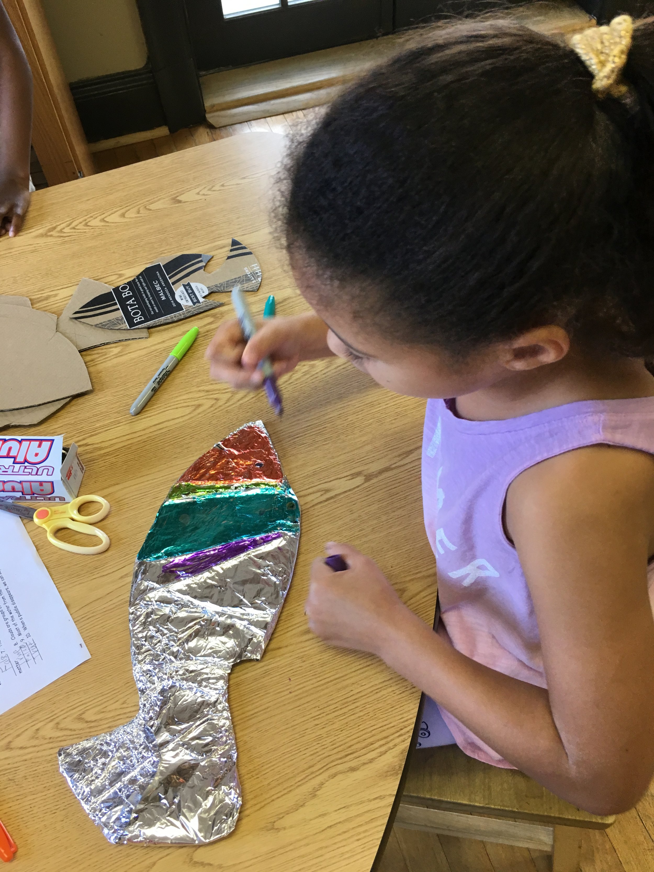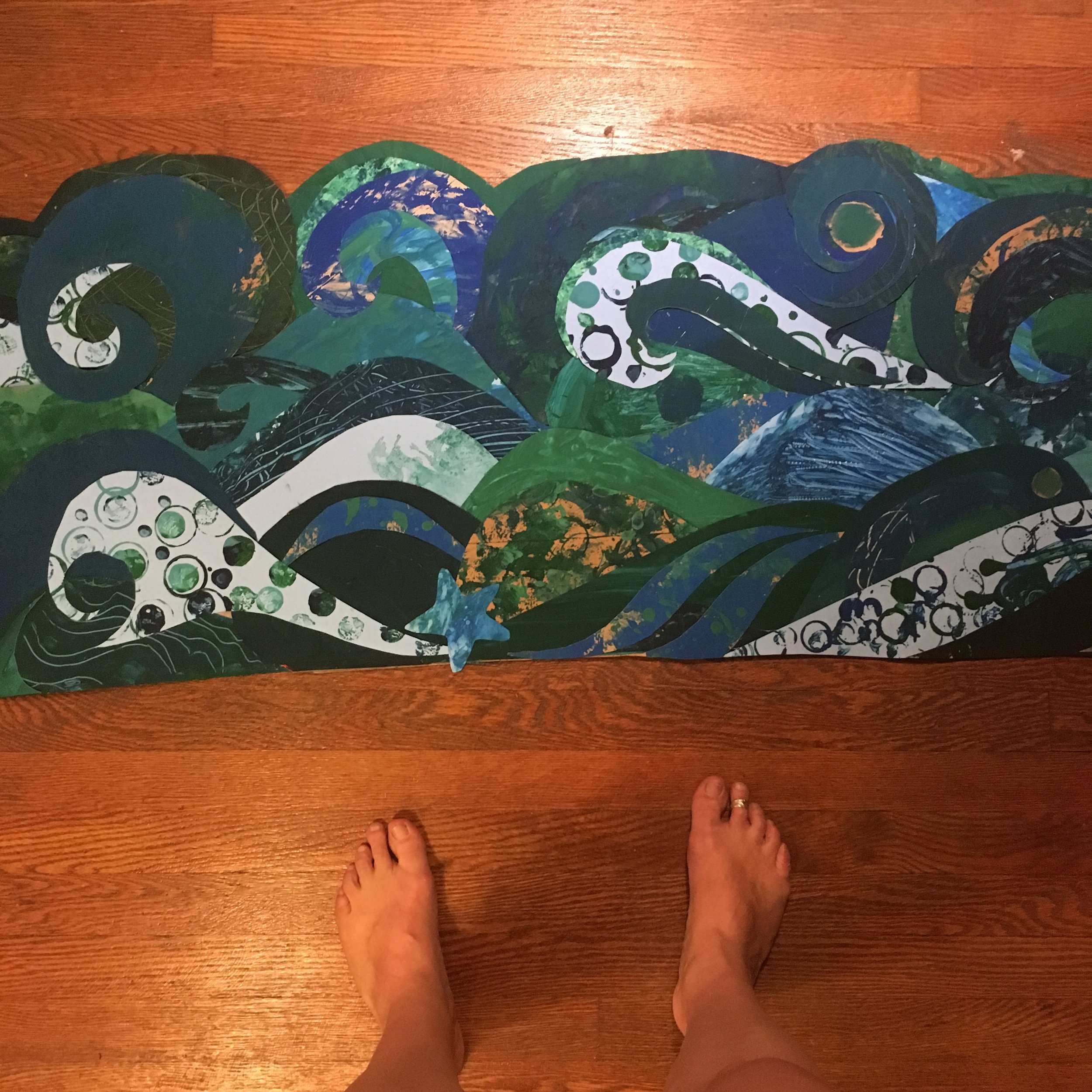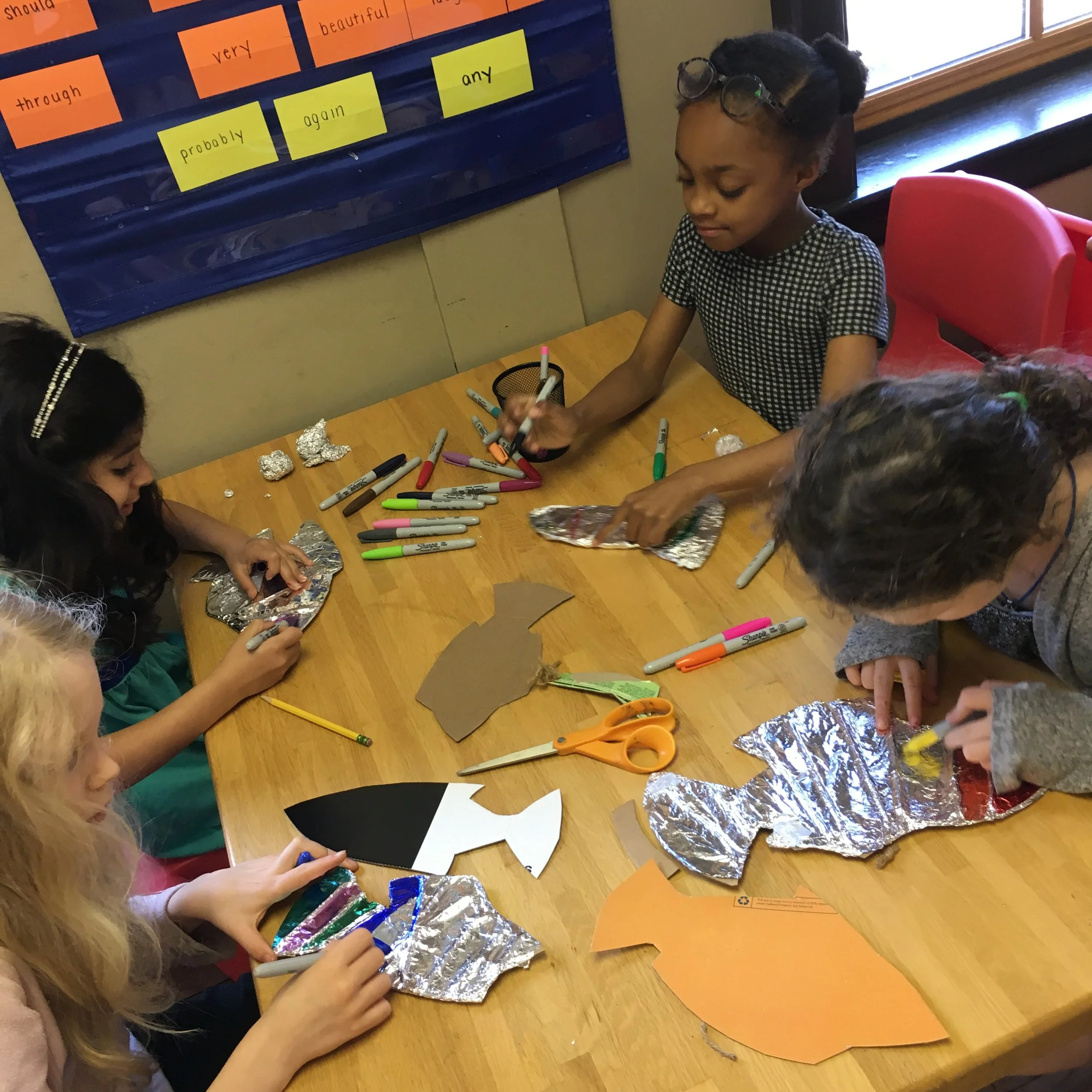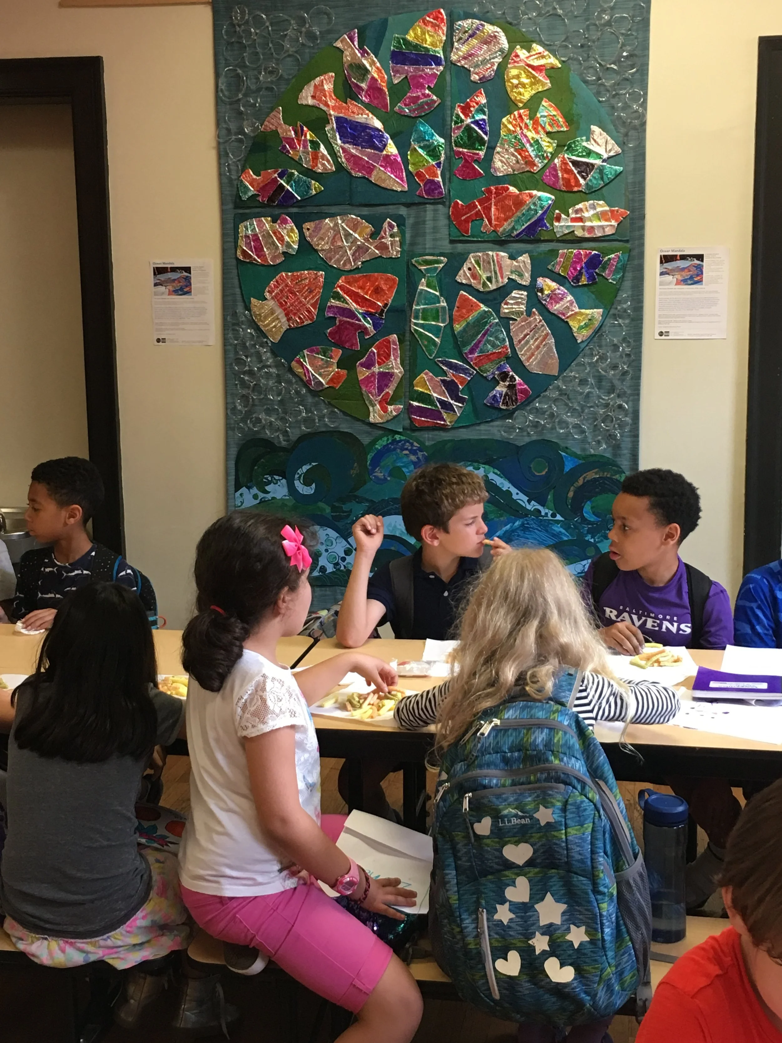 The New Century Ocean Mandala Painting the textures of water 3rd Graders making "stained glass" fish Collage of water textures Collaging the waves Kindergarteners painting water textures moments of fun 3rd graders making "stained Glass" fish Ocean mandala